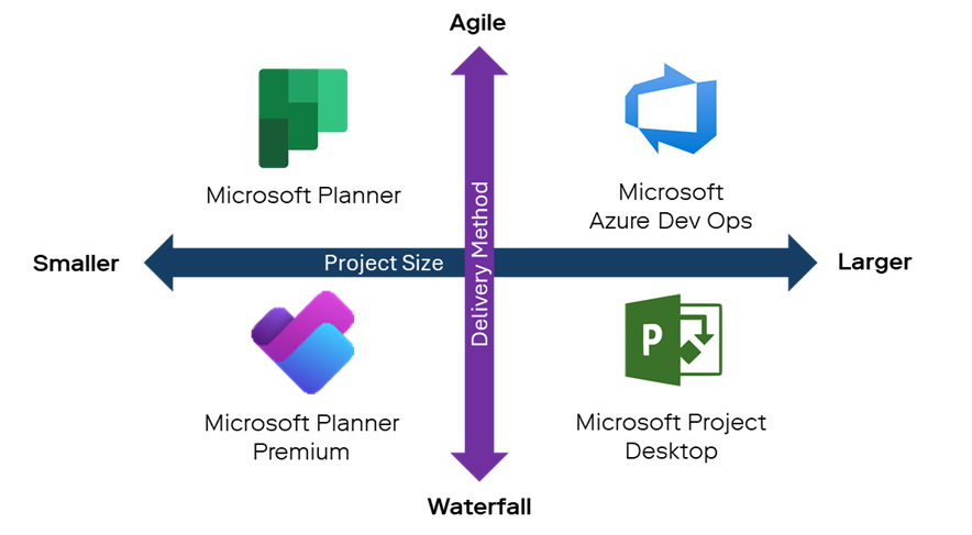 Depending on the project size and methodology, delivery teams will tend to gravitate towards different work management tools in, or outside of, the Microsoft ecosystem.