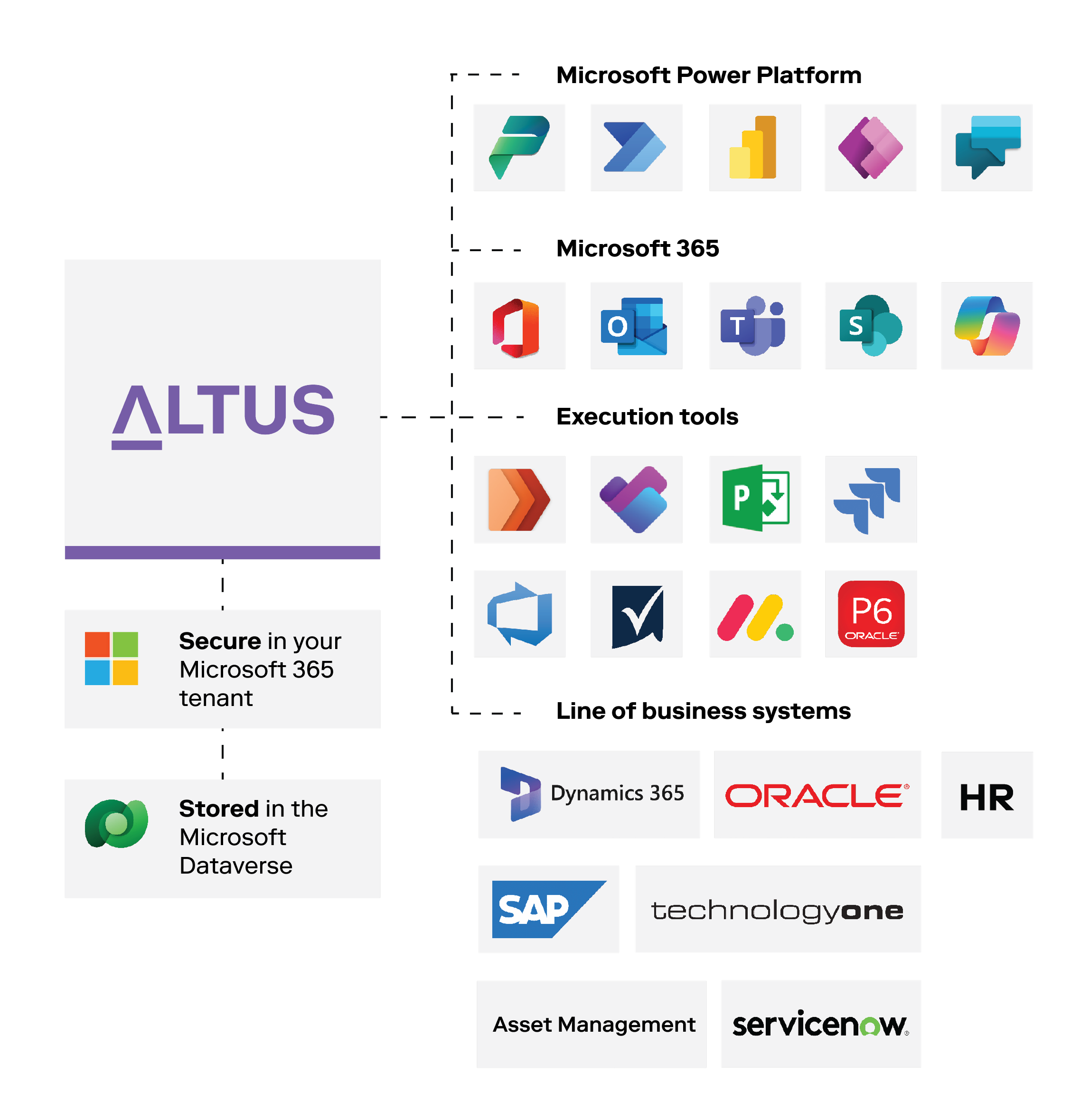 Leverage your Microsoft investment and seamlessly work on the go using the technology you and your team know and trust. Altus is deployed securely in your Microsoft 365 tenant on the Microsoft Power Platform, and utilises Model-Driven Apps, Power Automate Flows, Business Process Flows and Power BI, all leveraging the Dataverse for data and analytics. It is fully integrated with Microsoft Teams, harnesses the power of AI with Copilot.